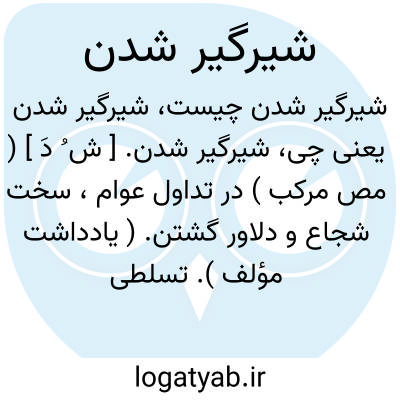 شیرگیر شدن. [ ش ُ دَ ] ( مص مرکب ) در تداول عوام، سخت شجاع و دلاور گشتن. ( یادداشت مؤلف ). تسلطی یافتن و چربیدن. ( آنندراج ):
