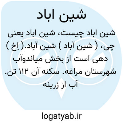 ( شین آباد ) شین آباد.( اِخ ) دهی است از بخش میاندوآب شهرستان مراغه. سکنه آن 112 تن. آب از زرینه رود. صنایع دستی جاجیم بافی.راه آن ماشین رو. ( از فرهنگ جغرافیائی ایران ج 4 ).
