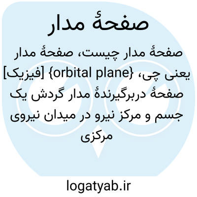 {orbital plane} [فیزیک] صفحۀ دربرگیرندۀ مدار گردش یک جسم و مرکز نیرو در میدان نیروی مرکزی