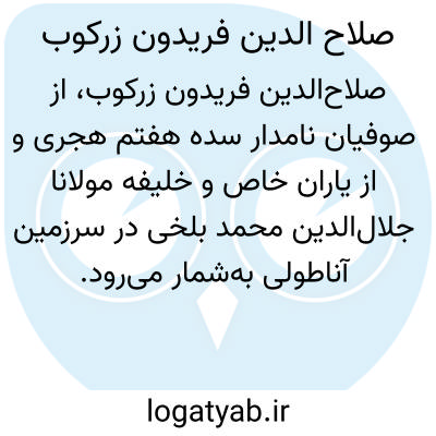 [ویکی فقه] زرکوب، صلاح الدین فریدون، صوفی سدۀ هفتم و یار خاص و خلیفۀ مولانا جلال الدین محمد (متوفی ۶۷۲) در آناطولی بود.
