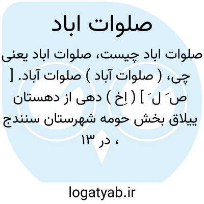 ( صلوات آباد ) صلوات آباد. [ ص َ ل َ ] ( اِخ ) دهی از دهستان ییلاق بخش حومه شهرستان سنندج، در 13 هزارگزی خاور سنندج، کنار شوسه سنندج به همدان واقع است. کوهستانی، سردسیر. دارای 2240 تن سکنه. آب آن از چشمه. محصول آنجا غلات و انواع میوه جات. شغل اهالی زراعت است. راه اتومبیل رو دارد. 3 قهوه خانه در طول شوسه دارد.گردنه صلوات آباد بین همدان و سنندج قرار دارد و یکی از گردنه های پرشیب است که پیچهای خطرناکی دارد و زمستان از برف مسدود میگردد. صنایع دستی زنان قالیچه و جاجیم بافی است. ( از فرهنگ جغرافیایی ایران ج 5 ).