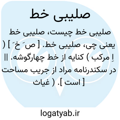 صلیبی خط. [ ص َ خ َ ] ( اِ مرکب ) کنایه از خط چهارگوشه. || در سکندرنامه مراد از جریب مساحت [ است ]. ( غیاث اللغات ).