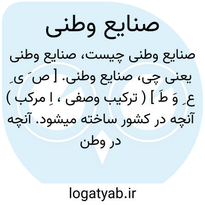 صنایع وطنی. [ ص َ ی ِ ع ِ وَ طَ ] ( ترکیب وصفی، اِ مرکب ) آنچه در کشور ساخته میشود. آنچه در وطن با دست صنعتگران وطن تهیه می گردد. مقابل صنایع خارجی. رجوع به صنایع ( صنایع ایران ) شود.