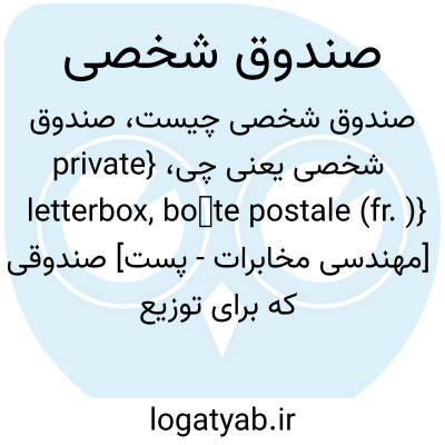 {private letterbox, boîte postale (fr. )} [مهندسی مخابرات - پست] صندوقی که برای توزیع مرسولات پُستی در محل سکونت اشخاص تعبیه شده است