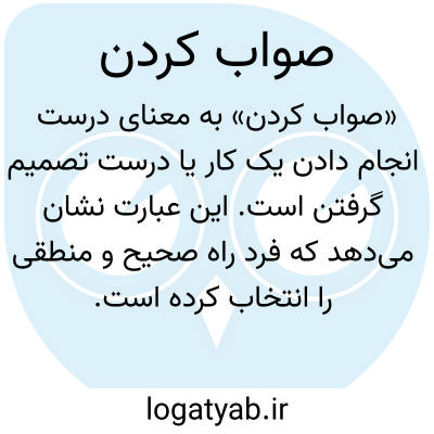 «صواب کردن» به معنای درست انجام دادن یک کار یا درست تصمیم گرفتن است. این عبارت نشان می‌دهد که فرد راه صحیح و منطقی را انتخاب کرده است. وقتی گفته می‌شود کسی کاری را صواب کرد، منظور این است که عمل او بجا، مناسب و مطابق عقل یا حقیقت بوده است. این ترکیب در زبان فارسی بیشتر در متون قدیمی، دینی و ادبی به کار رفته و کاربرد آن نشان‌دهنده تأکید بر درستی و صحت عمل است. «صواب کردن» معمولاً در برابر «خطا کردن» یا «اشتباه کردن» قرار می‌گیرد. این تقابل، معنای آن را روشن‌تر می‌کند. این اصطلاح بار معنایی مثبت دارد و نشان‌دهنده خردمندی، دقت و مسئولیت‌پذیری فرد است. بنابراین، «صواب کردن» به معنای درست عمل کردن، بجا تصمیم گرفتن و انتخاب راه صحیح است.