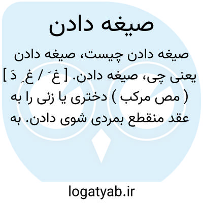 صیغه دادن. [ غ َ / غ ِ دَ ] ( مص مرکب ) دختری یا زنی را به عقد منقطع بمردی شوی دادن. به متعه دادن او را. به نکاح موقت او را بمردی دادن.