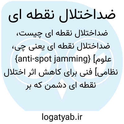 {anti-spot jamming} [علوم نظامی] فنی برای کاهش اثر اختلال نقطه ای دشمن که بر روی گیرنده های امواج الکترومغناطیسی خودی اعمال می شود