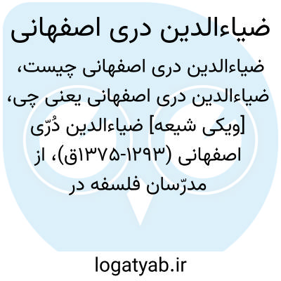 [ویکی شیعه] ضیاءالدین دُرّی اصفهانی (۱۲۹۳-۱۳۷۵ق)، از مدرّسان فلسفه در قرن چهاردهم قمری. او از روش مشائی پیروی می کرد. و نزد میرزا محمد حسن کرمانشاهی، ملا محمد کاشانی و جهانگیرخان قشقایی شاگردی کرد. وی علاوه بر تدریس در دانشگاه با تأسیس مدرسه ای، در آن به تحقیق و نگارش پرداخت به گونه ای که بسیاری از متون فلسفی و برخی رساله های ابن سینا و حکمای دیگر را ترجمه کرد. از آثار او می توان به اصول عقاید دین و فلسفة الاعتماد اشاره کرد.