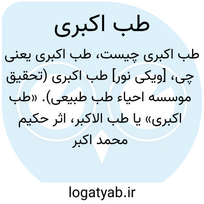 [ویکی فقه] طب اکبری (کتاب). «طب اکبری» یا طب الاکبر، اثر حکیم محمد اکبر ارزانی، دوره ای کامل در علم الامراض و شناخت و درمان بیماری ها که در سال ۱۱۱۲ ق به نگارش شده است.
