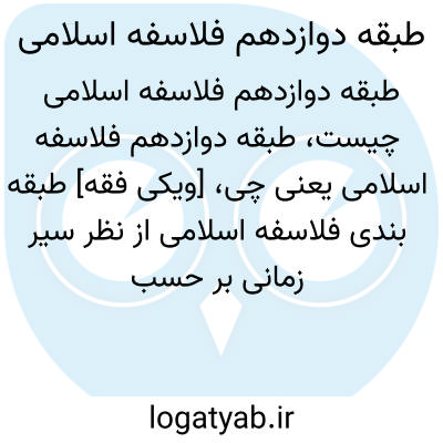 [ویکی فقه] طبقه بندی فلاسفه اسلامی از نظر سیر زمانی بر حسب استاد و شاگردی می باشد. یعنی آنان که در یک طبقه قرار می گیرند، یا واقعا از اساتید طبقه بعدی و شاگردان طبقه قبل هستند و یا هم زمان آن ها می باشند. منظور از فلاسفه اسلامی آن هایی هستند که در جو اسلامی و محیط اسلامی فعالیت داشته اند و احیانا مسلمان هم نبوده اند. در طبقه دوازدهم چهار تن از فیلسوفان اسلامی حضور دارند که عبارتند از: فریدالدین داماد نیشابوری، شمس الدین خسروشاهی، قطب الدین مصری و ابن منعه.
