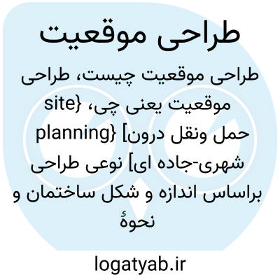 {site planning} [حمل ونقل درون شهری-جاده ای] نوعی طراحی براساس اندازه و شکل ساختمان و نحوۀ استقرار آن