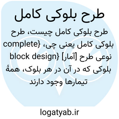 {complete block design} [آمار] نوعی طرح بلوکی که در آن در هر بلوک، همۀ تیمارها وجود دارند