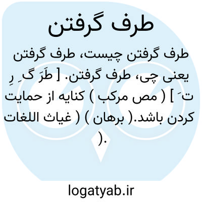 طرف گرفتن. [ طَرَ گ ِ رِ ت َ ] ( مص مرکب ) کنایه از حمایت کردن باشد.( برهان ) ( غیاث اللغات ). جانب داری کردن: