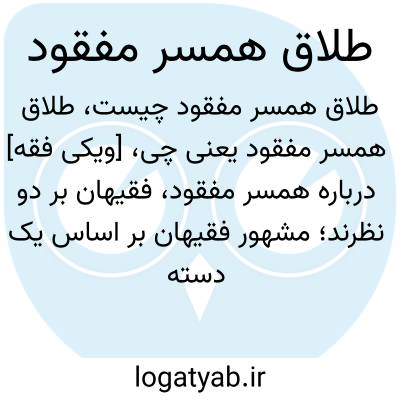[ویکی فقه] درباره همسر مفقود، فقیهان بر دو نظرند؛ مشهور فقیهان بر اساس یک دسته از روایات که در این باره آمده، گفته اند:زنی که شوهرش مفقود شده، هرگاه به حاکم مراجعه کند، حاکم چهار سال زمان تعیین می کند تا از شوهر جستجو شود. اگر خبری از او به دست نیامد، امکان طلاق برای همسر هست. در برابر نظر مشهور، بعضی فقیهان از جمله سید کاظم یزدی، رأی دیگری دارند و می گویند:لازم نیست حاکم چهار سال زمان تعیین کند، بلکه اگر از هنگام مفقود شدن شوهر چهار سال بگذرد و خبری از او نشد، همسر طلاق داده می شود. این گروه نیز به دسته دیگری از روایات در این موضوع استناد کرده اند. پس از بررسی سخنان و دلیل های دو گروه، به یکی از فرع های این مسأله می پردازیم که اگر شوهر در جنگ، مفقودالأثر گردد و یا محکوم به حبس درازمدت یا أبد شود، درباره همسر او نیز همان حکم جاری می شود.