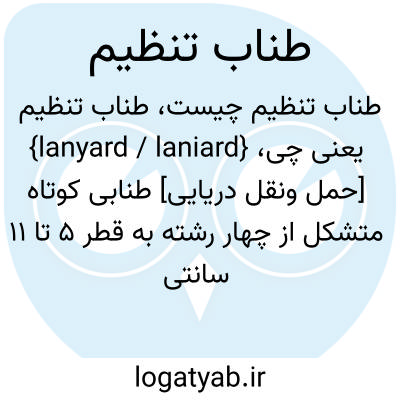 {lanyard / laniard} [حمل ونقل دریایی] طنابی کوتاه متشکل از چهار رشته به قطر 5 تا 11 سانتی متر از کنف یا الیاف گیاهی که در هنگام طناب کاری برای تنظیم از آن استفاده می کنند