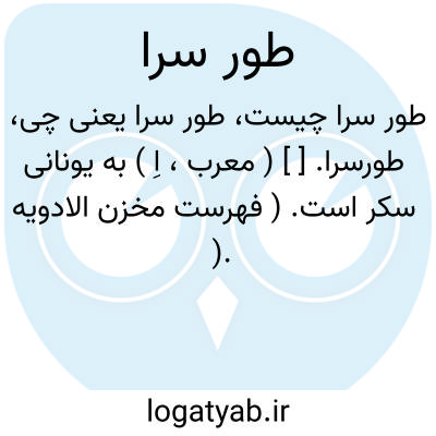 طورسرا. [ ] ( معرب، اِ ) به یونانی سکر است. ( فهرست مخزن الادویه ).