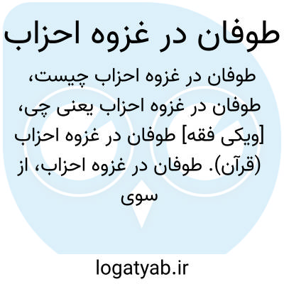 [ویکی فقه] طوفان در غزوه احزاب (قرآن). طوفان در غزوه احزاب، از سوی خداوند برای درهم شکستن سپاه کفر مأمور بود. فرستادن طوفان از سوی خداوند برای درهم شکستن سپاه دشمن در غزوه احزاب: یـایها الذین ءامنوا اذکروا نعمة الله علیکم اذ جاءتکم جنود فارسلنا علیهم ریحا وجنودا لم تروها...
