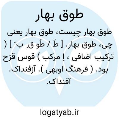 طوق بهار. [ طَ / طُو ق ِ ب َ ] ( ترکیب اضافی، اِ مرکب ) قوس قزح بود. ( فرهنگ اوبهی ). آزفنداک. آفنداک. تیراژه. کمر رستم. کمردون. کمان رستم. نوشه. سریر. ( حاشیه فرهنگ اسدی نخجوانی ). رخش. انطلیسون. نوشه. رنگین کمان. ( لغت مصوب فرهنگستان ).