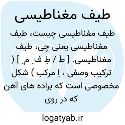 طیف مغناطیسی. [ طَ / طِ ف ِ م ِ ] ( ترکیب وصفی، اِ مرکب ) شکل مخصوصی است که براده های آهن که در روی صفحه ریخته شده است بر اثر قرار دادن آهن ربائی در زیر صفحه بخود میگیرند، از جریان الکتریک نیز آن شکل پیدا میشود.