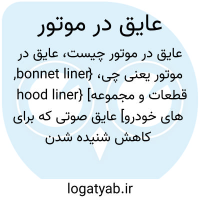 {bonnet liner, hood liner} [قطعات و مجموعه های خودرو] عایق صوتی که برای کاهش شنیده شدن صدای موتور در زیر در موتور نصب می شود