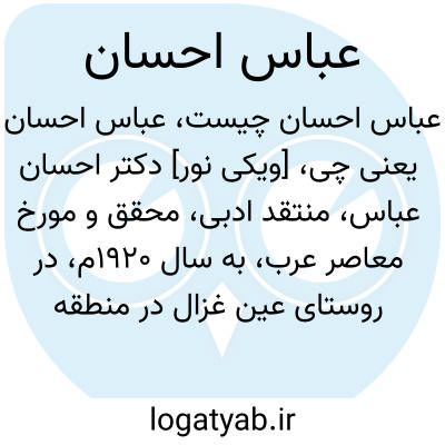 [ویکی نور] دکتر احسان عباس، منتقد ادبی، محقق و مورخ معاصر عرب، به سال 1920م، در روستای عین غزال در منطقه حیفای فلسطین زاده شد.