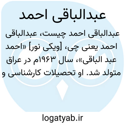 [ویکی نور] «احمد عبد الباقی»، سال 1963م در عراق متولد شد.