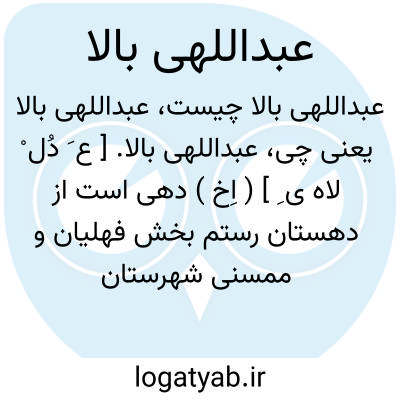 عبداللهی بالا. [ ع َ دُل ْ لاه ی ِ ] ( اِخ ) دهی است از دهستان رستم بخش فهلیان و ممسنی شهرستان کازرون واقع در هشت هزارگزی شمال خاور فهلیان کنار شوسه کازرون به بهبهان. ناحیه ای است واقع در دامنه. گرمسیر و مالاریایی است 119 تن سکنه دارد. آب آن از رودخانه فهلیان و چشمه تأمین میشود محصولاتش: غلات، برنج، حبوبات است اهالی به کشاورزی اشتغال دارند. ( از فرهنگ جغرافیائی ایران ج 7 ).