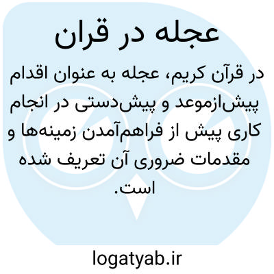 در قرآن کریم، عجله به عنوان اقدام پیش‌ازموعد و پیش‌دستی در انجام کاری پیش از فراهم‌آمدن زمینه‌ها و مقدمات ضروری آن تعریف شده است. از منظر آموزه‌های قرآنی، هر اقدام اساسی نیازمند بسترسازی و تمهید مقدمات است؛ به گونه‌ای که اگر این پیش‌نیازها مهیا نگردد، عمل به ثمر نخواهد نشست و اگر این زمینه‌ها فراهم آید اما اقدام شایسته و به‌موقع صورت نپذیرد و فرصت‌های پیش‌آمده از دست برود، باز هم تلاش به نتیجه مطلوب نخواهد رسید. بنابراین، خردمندان، دوراندیشان و مدیران بصیر کسانی هستند که با صبر و حوصله، منتظر تکمیل مقدمات می‌مانند و آنگاه بی‌درنگ و با قاطعیت، اقدام لازم را به عمل می‌آورند و تا حصول نتیجه نهایی، از پای نمی‌نشینند.