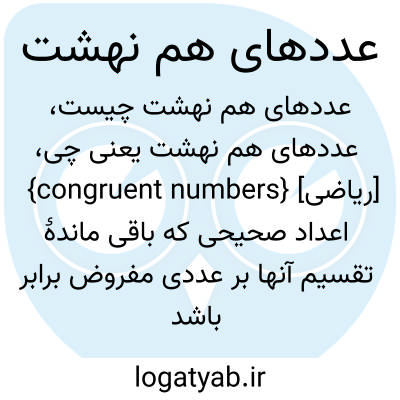 {congruent numbers} [ریاضی] اعداد صحیحی که باقی ماندۀ تقسیم آنها بر عددی مفروض برابر باشد