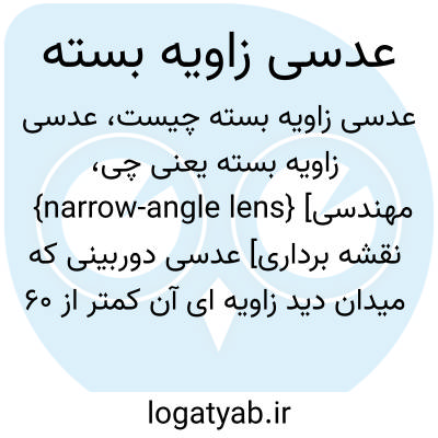 {narrow-angle lens} [مهندسی نقشه برداری] عدسی دوربینی که میدان دید زاویه ای آن کمتر از 60 درجه باشد