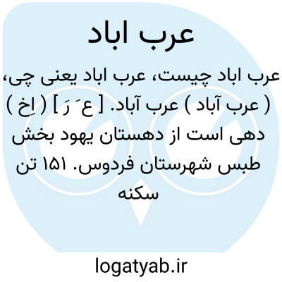 ( عرب آباد ) عرب آباد. [ ع َ رَ ] ( اِخ ) دهی است از دهستان یهود بخش طبس شهرستان فردوس. 151 تن سکنه دارد. آب آن از قنات و شغل اهالی زراعت است. ( از فرهنگ جغرافیائی ج 9 ).