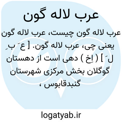 عرب لاله گون. [ ع َ ب ِ ل َ ] ( اِخ ) دهی است از دهستان گوگلان بخش مرکزی شهرستان گنبدقابوس، ناحیه ای است کوهستانی سردسیر. 220 تن سکنه دارد. شغل اهالی زراعت و گله داری است، صنایع دستی زنان بافتن پارچه های ابریشمی است. ( از فرهنگ جغرافیایی ایران ج 3 ).