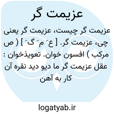 عزیمت گر. [ ع َ م َ گ َ ] ( ص مرکب ) افسون خوان. تعویذخوان: