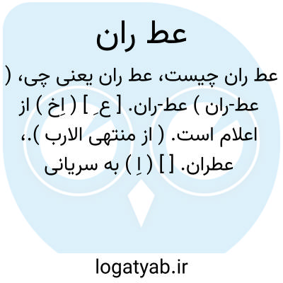 ( عط-ران ) عط-ران. [ ع ِ ] ( اِخ ) از اعلام است. ( از منتهی الارب ).، عطران. [ ] ( اِ ) به سریانی قطران است. ( فهرست مخزن الادویه ).
