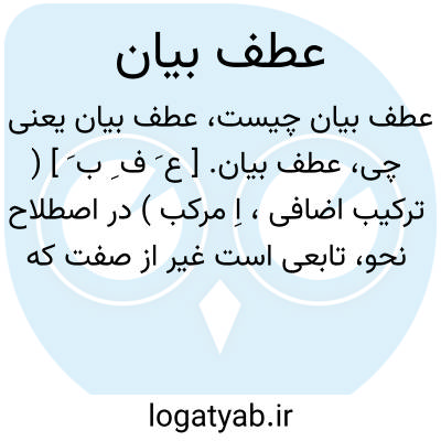 عطف بیان. [ ع َ ف ِ ب َ ] ( ترکیب اضافی، اِ مرکب ) در اصطلاح نحو، تابعی است غیر از صفت که متبوع خود را توضیح دهد، چون ابوحفص عمر، که عمر عطف بیان است ابو را. ( از تعریفات جرجانی ). چیزی است که متبوع را واضح و روشن کند و فرقش با صفت آن است که صفت مشتق باشد و عطف بیان مشتق یا مؤول به مشتق نباشد. و حق عطف بیان آن است که زیادتی توضیح را برای متبوع خود افاده کند مانند «ذکرت اﷲ فی الواد المقدس طُوی » و آنچه صالح است که بدل شود تواند که عطف بیان شود مانند قدم صدیقک خالد. و گاهی در لفظبا بدل اشتباه شود هر چند آن را با بدل فرقهایی است که در کتب صرف مذکور است. ( از کشاف اصطلاحات الفنون و فرهنگ علوم نقلی، به نقل از مغنی و سیوطی و مختصر المعانی ). || در اصطلاح دستور زبان فارسی، چون دو لفظ در یک جمله بی حرف عطف با هم آیند و لفظ دوم در انتساب چیزی تابع اول، و مقصود اصلی در انتساب، لفظ اول باشد و ذکر دوم فقط برای افاده تفسیر و بیان بود، لفظ دوم را عطف بیان و اول را مبین نامند وحرف آخرش ساکن بود. عطف بیان مشابه به صفت است یعنی چنانکه صفت موصوف را واضح گرداند عطف بیان نیز متبوع را توضیح دهد اما صفت برای تعریف یا تخصیص آید و عطف بیان فقط برای تفسیر و بیان آید. مثال از سعدی: