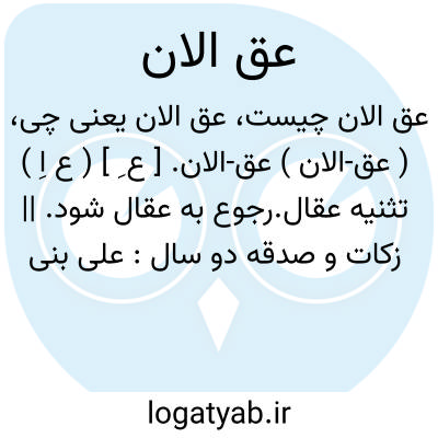 ( عق-الان ) عق-الان. [ ع ِ ] ( ع اِ ) تثنیه عقال.رجوع به عقال شود. || زکات و صدقه دو سال: علی بنی فلان عقالان؛ بر آنها صدقه دو سال است. ( ازمنتهی الارب ) ( از اقرب الموارد ). رجوع به عقال شود.