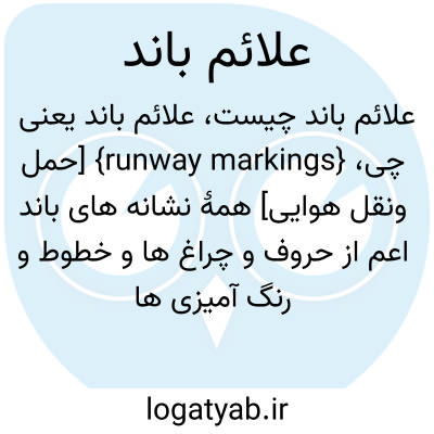 {runway markings} [حمل ونقل هوایی] همۀ نشانه های باند اعم از حروف و چراغ ها و خطوط و رنگ آمیزی ها