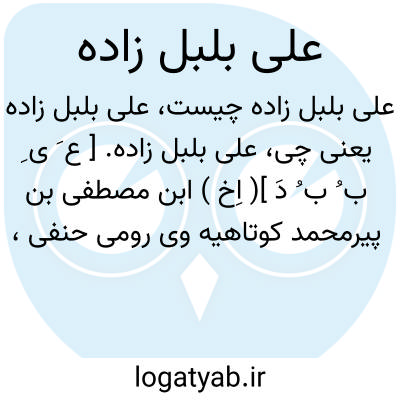 علی بلبل زاده. [ ع َ ی ِ ب ُ ب ُ دَ ]( اِخ ) ابن مصطفی بن پیرمحمد کوتاهیه وی رومی حنفی، ملقّب به جبری و مشهور به بلبل زاده. فقیه بود و در حدود سال 1072 هَ. ق. در شهر قرن حصار درگذشت. او راست: 1 - الاولی فی تلخیص الفتاوی. 2 - حدیقة الفقهاء فی الفتاوی. 3 - ذخرالاخرة. 4 - زبدةالفکر فی زیارة سیدالبشر. 5 - العقودالدریة فی شرح فرائض الحبریة. ( از معجم المؤلفین بنقل از هدیةالعارفین بغدادی ج 1 ص 760 ).