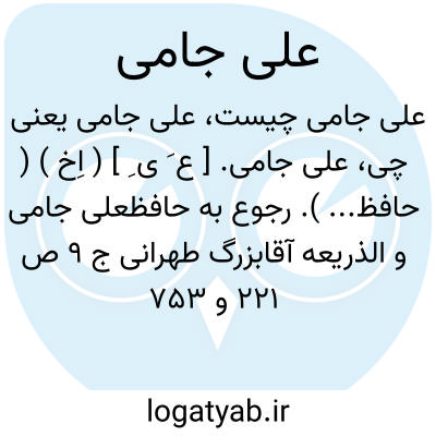 علی جامی. [ ع َ ی ِ ] ( اِخ ) ( حافظ... ). رجوع به حافظعلی جامی و الذریعه آقابزرگ طهرانی ج 9 ص 221 و 753 شود.