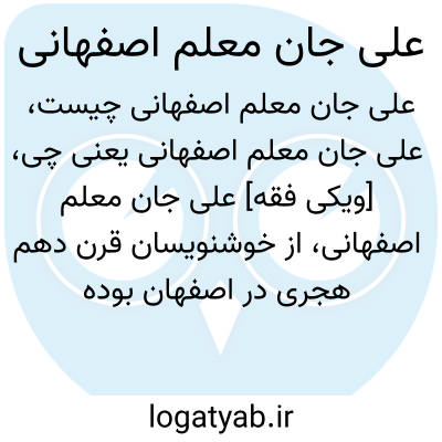 [ویکی فقه] علی جان معلم اصفهانی، از خوشنویسان قرن دهم هجری در اصفهان بوده است.