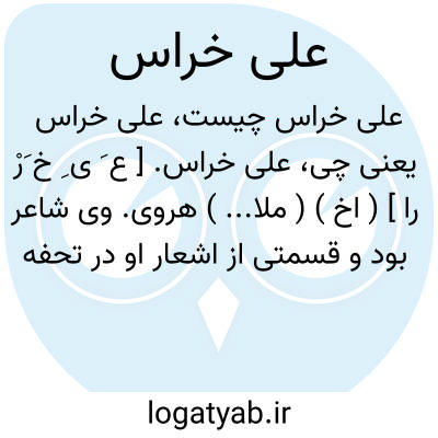 علی خراس. [ ع َ ی ِ خ َرْ را ] ( اخ ) ( ملا... ) هروی. وی شاعر بود و قسمتی از اشعار او در تحفه سامی ( ص 69 ) نقل شده است. ( از الذریعه آقابزرگ طهرانی ج 9 ص 755 ).