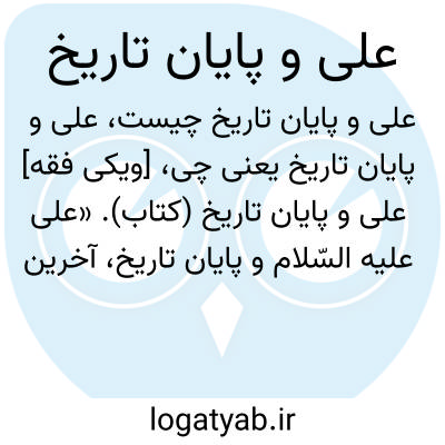 [ویکی فقه] علی و پایان تاریخ (کتاب). «علی علیه السّلام و پایان تاریخ، آخرین امام در نگاه اولین امام» اثر سید عبدالمجید فلسفیان به زبان فارسی و در سال ۱۳۷۸ ش نوشته شده است.