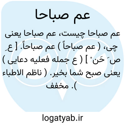 ( عم صباحاً ) عم صباحاً. [ ع ِ ص َ حَن ْ ] ( ع جمله فعلیه دعایی ) یعنی صبح شما بخیر. ( ناظم الاطباء ). مخفف «اَنْعِم ْ صَباحاً».