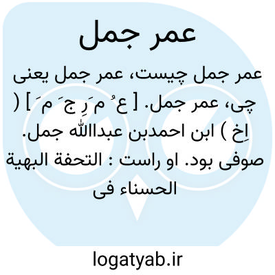 عمر جمل. [ ع ُ م َرِ ج َ م َ ] ( اِخ ) ابن احمدبن عبداﷲ جمل. صوفی بود. او راست: التحفة البهیة الحسناء فی شرح اسماء ربنا الحسنی که در سال 1198 هَ.ق. از تألیف آن فراغت یافت. ( از معجم المؤلفین از فهرس الازهریة ج 6 ص 341 ).