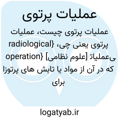 {radiological operation} [علوم نظامی] عملیات‍ی که در آن از مواد یا تابش های پرتوزا برای آسیب رساندن به دشمن یا محدود کردن او در منطقۀ عملیات استفاده می شود