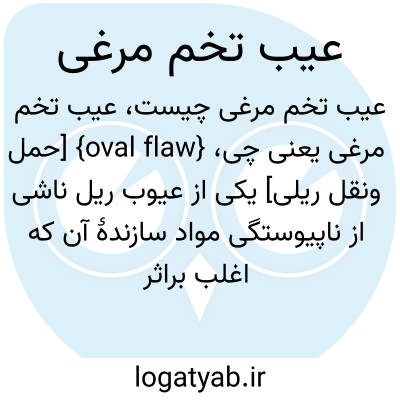 {oval flaw} [حمل ونقل ریلی] یکی از عیوب ریل ناشی از ناپیوستگی مواد سازندۀ آن که اغلب براثر حرارت زیاد در هنگام تولید ایجاد می شود و به مرور زمان به شکل تخم مرغ در کلاهک ریل ظاهر می شود