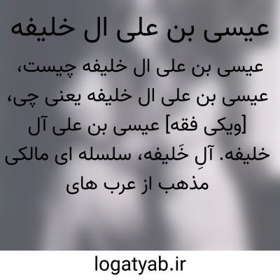 [ویکی فقه] عیسی بن علی آل خلیفه. آلِ خَلیفه، سلسله ای مالکی مذهب از عرب های عَتوبی عربستان که در نخستین سال های سده ۱۸م به کرانه های جنوبی خلیج فارس کوچیدند، درحدود ۱۱۹۶ق/۱۷۸۲م مجمع الجزایر بحرین را گرفتند و تا امروز بر بحرین فرمانروایی دارند. یکی از شخصیت های این خاندان، عیسی بن علی است.