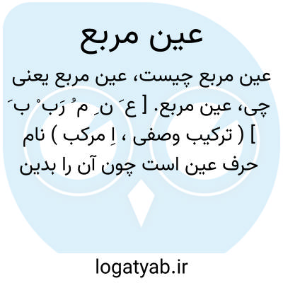 عین مربع. [ ع َ ن ِ م ُ رَب ْ ب َ ] ( ترکیب وصفی، اِ مرکب ) نام حرف عین است چون آن را بدین صورت «ع » نویسند. ( یادداشت مرحوم دهخدا ).نامی حرف «ع » را آنگاه که بصورتی خاص تحریر گردد.