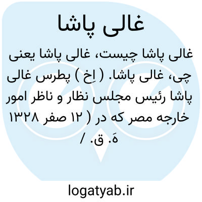غالی پاشا. ( اِخ ) پطرس غالی پاشا رئیس مجلس نظار و ناظر امور خارجه مصر که در ( 12 صفر 1328 هَ. ق. / فوریه 1910 م. ) بر اثر ترور کشته شده است. رجوع به کتاب التاج جاحظ چ قاهره حاشیه ص 156 و بطرس شود.