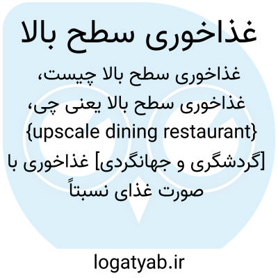 {upscale dining restaurant} [گردشگری و جهانگردی] غذاخوری با صورت غذای نسبتاً متنوع که هم سرِ میز خدمات ارائه می کند و هم در پیشخان متـ. رستوران سطح بالا